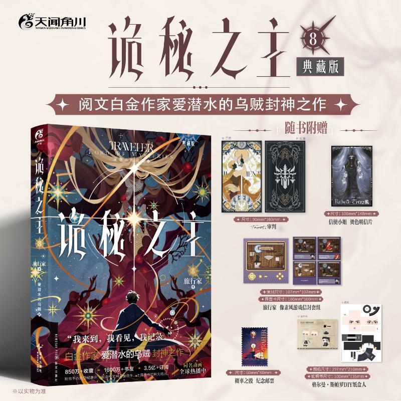主要卖点1、《诡秘之主》实体书典藏版全新上市!基于起点App版本精细校对。本书为诡秘之主第三卷·旅行家卷·开篇,大冒险家格尔曼·斯帕罗正式上线!2、850万+收藏,1600万+书友,3.5亿+订阅,长期占据起点月票榜前列的畅销作品,全网瞩目的超人气文学IP,起点千盟级作品的半壁江山!3、入藏大英博物馆和上海图书馆网文精品,起点中文网千盟级佳作,阅文白金作家“爱潜水的乌贼”封神之作!4、精美赠品:Tarot.审判、旅行家 像素风游戏信封套组、信使小姐 烫色明信片、格尔曼·斯帕罗DIY纸盒人、概率之骰 纪念邮票、起点App限定福利兑换卡。