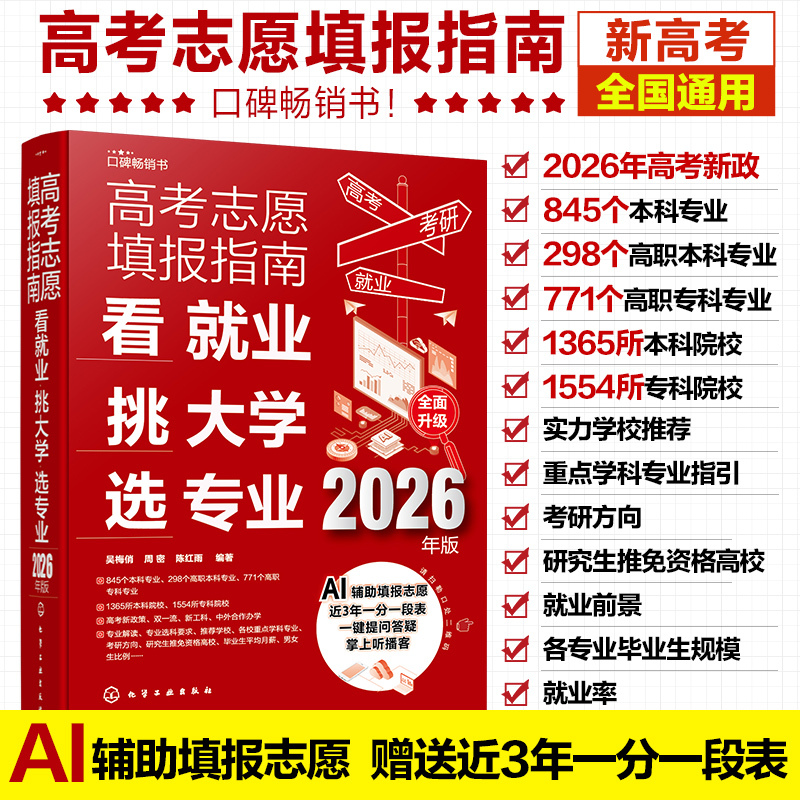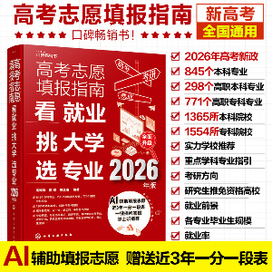 《高考志愿填报指南:看就业、挑大学、选专业》(2026年版)以职业生涯规划为目标,针对院校[本科院校、高职(本科、专科)院校、独立学院、军事院校、港澳台高校等]和专业进行了“三维立体”的剖析。