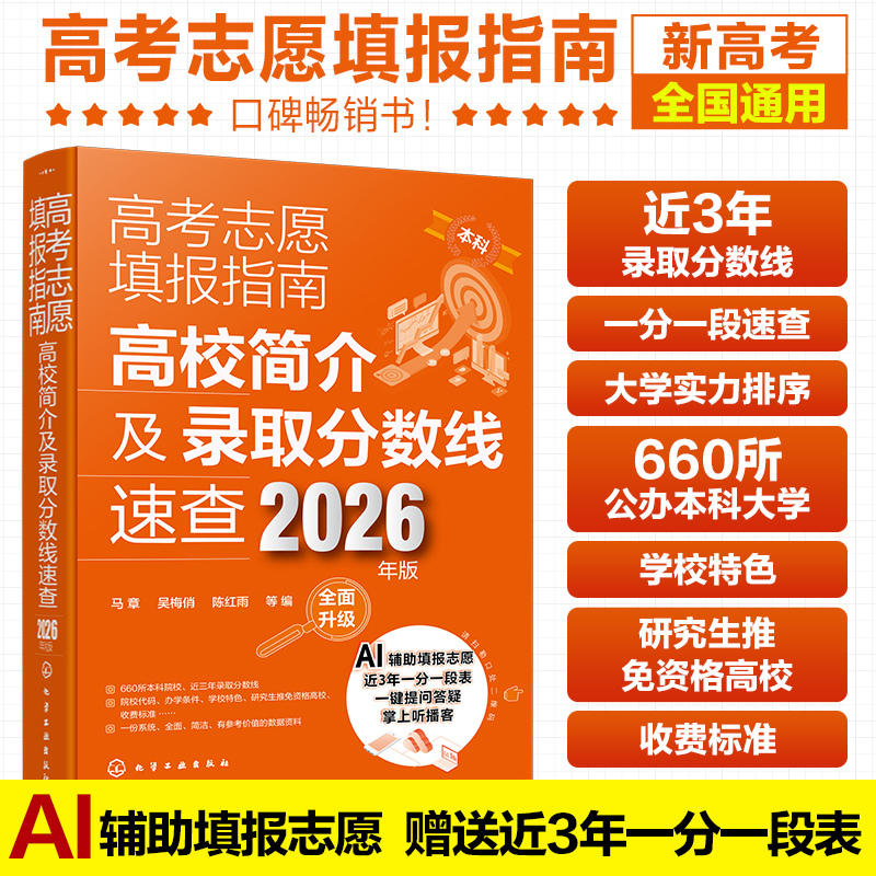 《高考志愿填报指南:高校简介及录取分数线速查》(2026年版)是高考学子不可缺少的志愿填报工具书。本书包括31个省、区、市近三年的660所本科院校不同批次的高考录取分数线,以及各高校的院校代码、学校简介、办学条件、开设专业、重点学科、收费标准等实用信息。