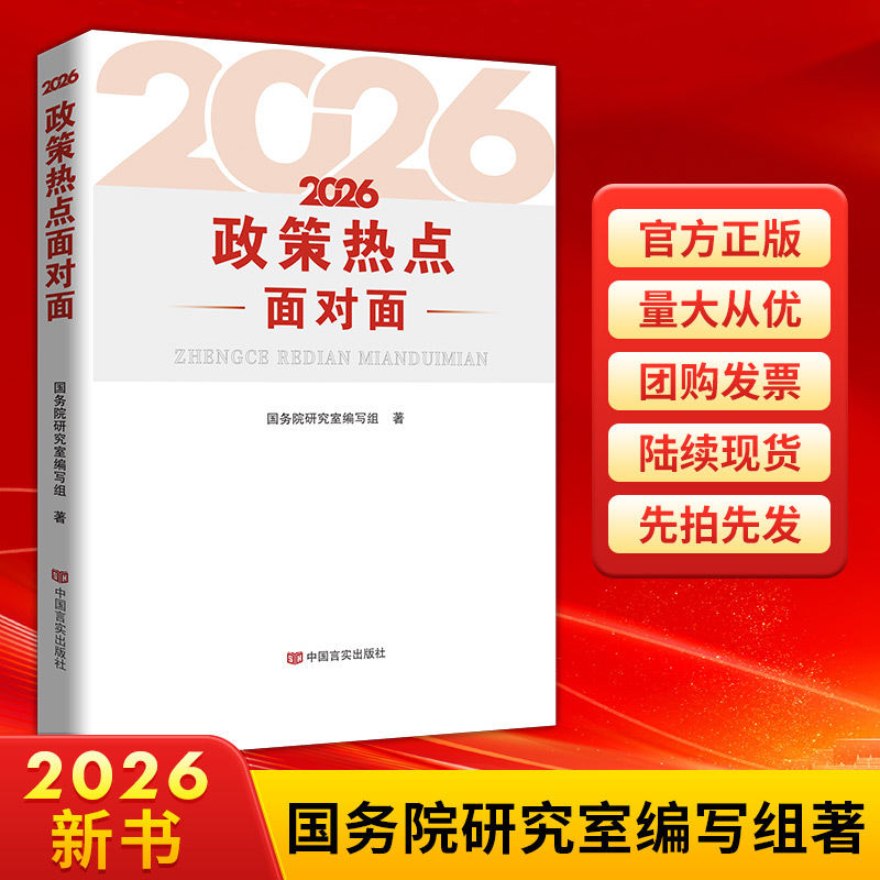 《2026 政策热点面对面》由《报告》起草组成员编写。全书从《报告》中选取约200个重点热点问题,言简意赅、图文并茂地进行解读阐释。本书以党中央大政方针、相关法律法规和政策为依据,观点权威准确、形式生动活泼,是广大干部群众学习领会《报告》精神的重要辅助读物。